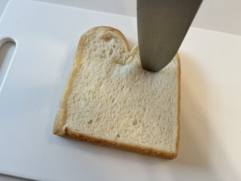 パンに切り込みを入れる時は包丁の先で軽く刺す感じで。深く切ると卵液が染み込んだ状態で持った時に形が崩れてしまいます!